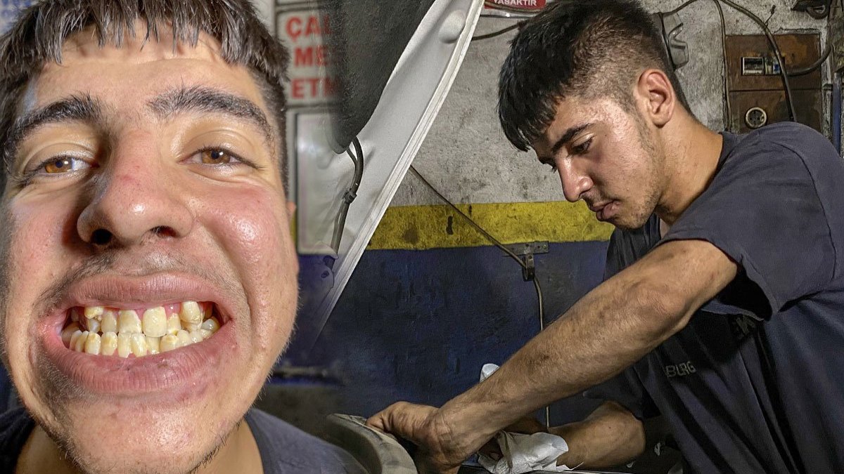 Antalya'da, Ümit Ulaş (17), ön damağından çıkan dişlerinin tedavisini 4 yıldır bulamadı. Katı gıdayla beslenmekte ve ağrı nedeniyle uyumakta zorlanan Ulaş, tedavi için istenen 80 bin lirayı biriktirebilmek için okuluna ara verip sanayide çalışmaya başladı.