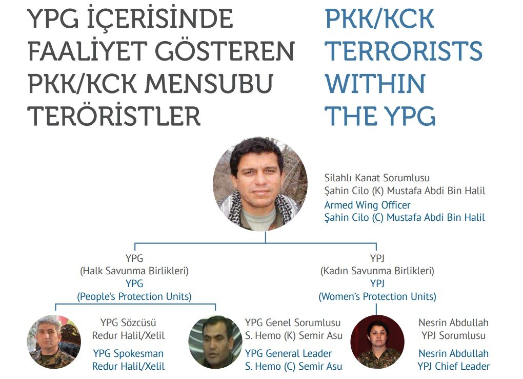 Raporda, YPG’nin başında bir dönem yer alan ve tekrar Kandil’e giden bir diğer ismin de Fehman Hüseyin olduğu, bu teröristin bizzat Hakkâri Dağlıca’da ve Aktütün Sınır Karakolunda 36 askerimizin şehit edildiği saldırılar öncesinde bölgede keşif ve eylem planlaması yaptığı, buna dair görüntülerin terör örgütünün kendi yayın organlarında bile yer aldığı, bu teröristin 1992-99 yıllarında Şırnak kırsalında sözde sorumlu düzeyde faaliyetlerde bulunduğu bilgisine yer verildi. Son olarak Mazlum Kobani kod adlı Ferhat Abdi Şahin’in YPG’nin başında yer aldığı, bu teröristin de Türkiye’de turizm bölgelerindeki bombalı saldırıların gerçekleştirildiği PKK’nın eski sözde Özel Güç sorumlusu olduğu ve çok sayıda kanlı saldırının talimatını verdiği vurgulandı.