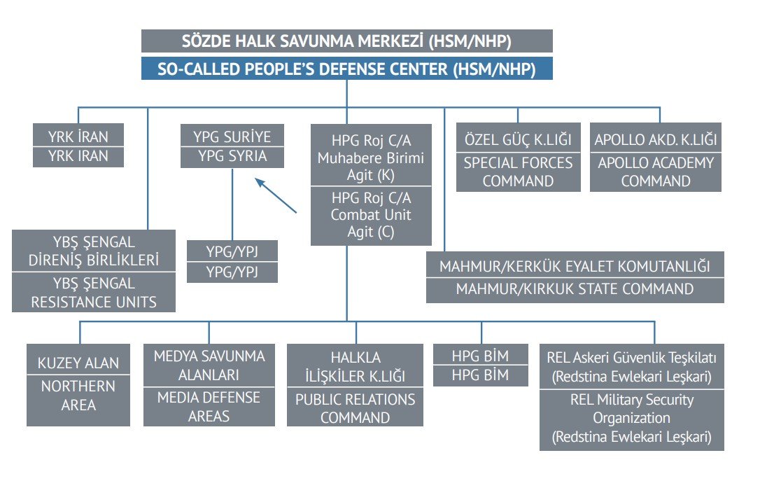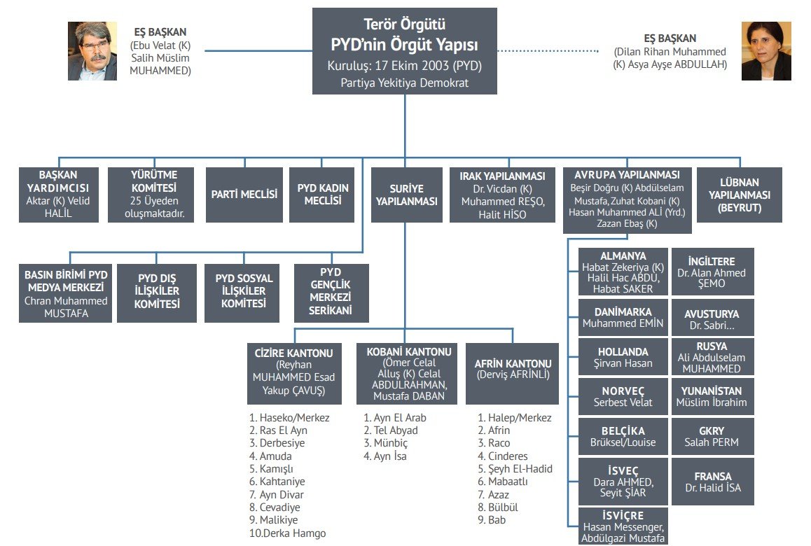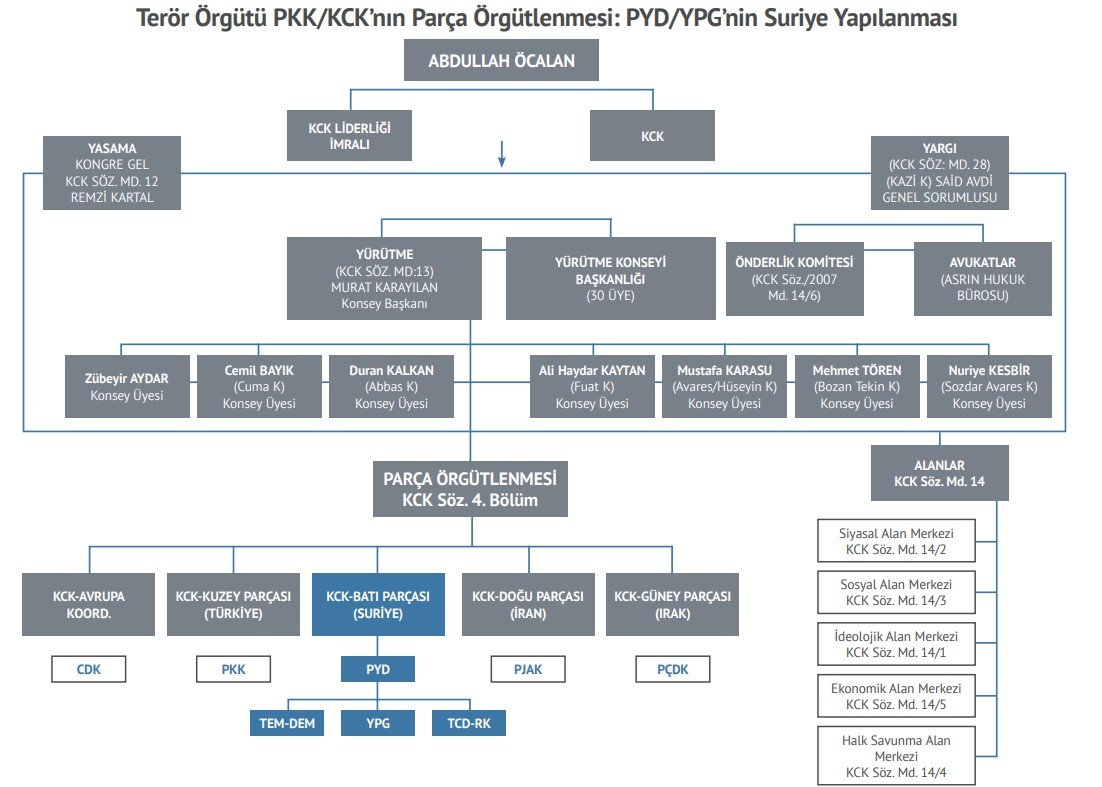 Suriye Demokratik Güçleri sözde merkez karargâhının tamamının PKK elebaşlarından oluştuğu bildirilirken, bunların da doğrudan Kandil’deki Murat Karayılan ile Cemil Bayık tarafından kumanda edildiği anlatıldı. Raporda, PKK-YPG bağını somut biçimde anlatan şemalı yapılanmada, yakalanan veya teslim olan teröristlerin mahkemeler huzurunda alınan ifadelerinin birer onaylı suretleri de yer aldı. Haseki’ye bağlı Resulayn ilçesinde SDG içinde faaliyet yürütürken kaçarak Şanlıurfa Ceylanpınar’da güvenlik güçlerine teslim olan Metin kod adlı R.G’nin itiraflarına da ayrıntılı yer verildi.