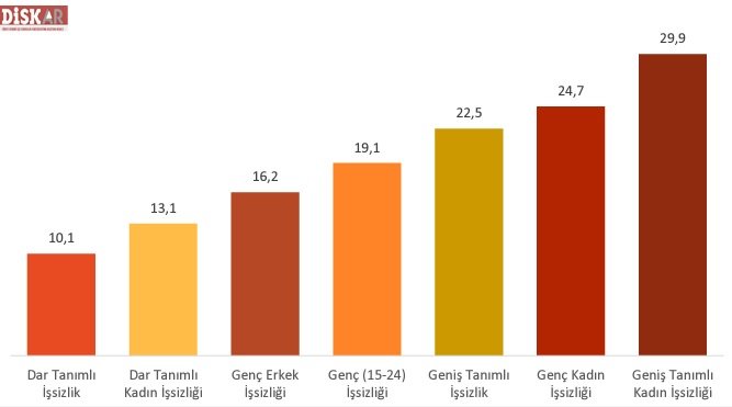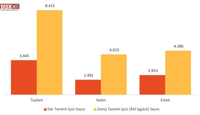 DİSK-AR'ın raporunda, "TÜİK’in âtıl işgücü oranından hareketle yaptığımız hesaplamaya göre, mevsim etkisinden arındırılmış geniş tanımlı işsiz sayısı Temmuz 2022’de 8 milyon 415 bin olarak gerçekleşti" denildi.