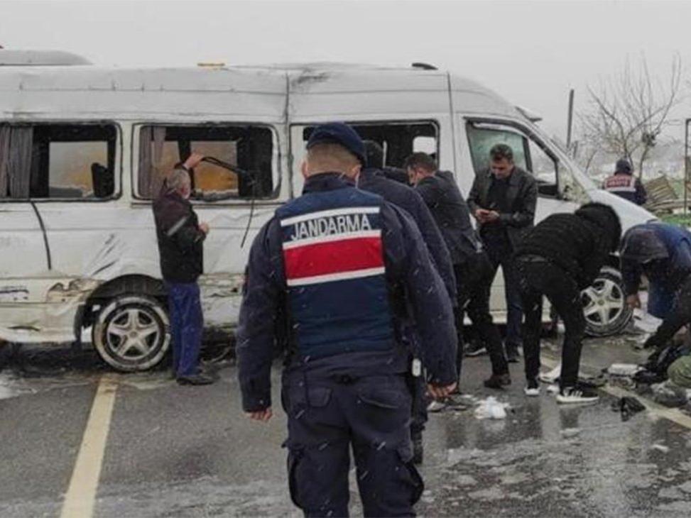 Denizli’nin Honaz ilçesinde diyaliz hastalarını taşıyan minibüs kar yağışının etkisiyle kayması sonucunda devrildi. Araç içerisinde bulunan 4 kişi yaralanırken, ambulansla hastaneye kaldırıldı.
