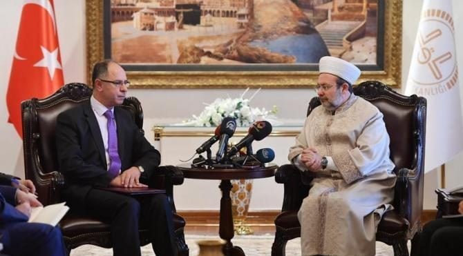 Görmez, "Filistin Devleti Büyükelçisini başkanlığımızda ağırlamaktan mutluluk duyduğumu belirtmek isterim" dedi. İnsanlık ve Müslümanlar olarak çok zor bir süreçten geçildiğine dikkat çeken Başkan Görmez, bu zor süreçte, bütün bu zorlukların başlangıcı olan Filistin davasının daha önemli bir hale geldiğini söyledi.