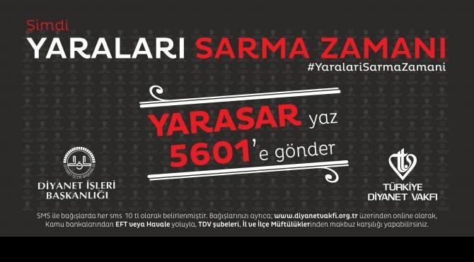 "Aziz milletimizin birbirinin yaralarının bizzat sarması yahut bizzat sarmaya yardımcı olması hem birliğimiz için, hem dirliğimiz için, hem kardeşliğimiz için, hem de geleceğimiz için önemlidir. Buradan bütün iş adamlarımızı, bütün sanayicilerimizi, bütün esnafımızı, sanayi ve ticaret odalarımızı, sendikalarımızı, sivil toplum örgütlerimizi, bütün sanatçılarımızı ve milletimizin her ferdini bu kampanyamıza destek vermeye davet ediyorum. Şimdi şehit ailelerinin yaralarını sarma zamanıdır. Şimdi terör mağduru olan vatandaşlarımızın yaralarını sarma zamanıdır. Şimdi Bayırbucak Türkmenlerinin yaralarını sarma zamanıdır. Yardımlar hem SMS yoluyla, hem doğrudan havale yoluyla, hem bütün il ve ilçe müftülüklerimize, hem Türkiye Diyanet Vakfı şubelerimizden yapılabilecektir. Doğrudan SMS ile yardım yapmak isteyenler “YARASARö yazıp 5601’e gönderebilirler."