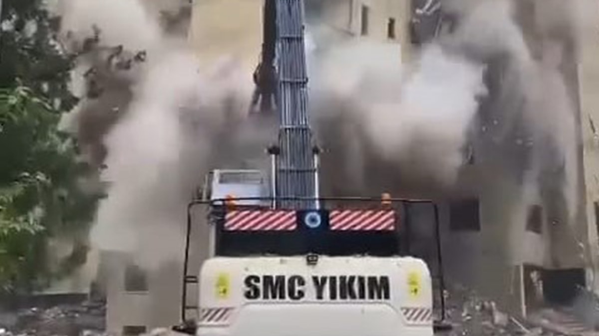 Kahramanmaraş merkezli 6 Şubat'taki depremlerde ağır hasar aldığı için tahliye edilen Bağlar ilçesi Mevlana Halit Mahallesi'ndeki 9 katlı bina, kontrollü yıkım sırasında çöktü.