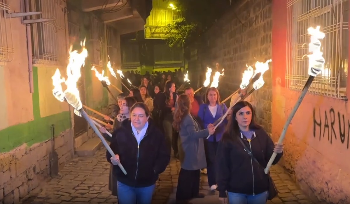 Çeşitli sivil toplum kuruluşlarınca 25 Kasım Kadına Yönelik Şiddete Karşı Uluslararası Mücadele Günü dolayısıyla meşaleli yürüyüş düzenlendi. Merkez Sur ilçesindeki İskenderpaşa mahallesinde bir araya gelen kadınlar ellerinde meşaleleriyle yaptıkları yürüyüşte kadına yönelik şiddeti protesto etti.
