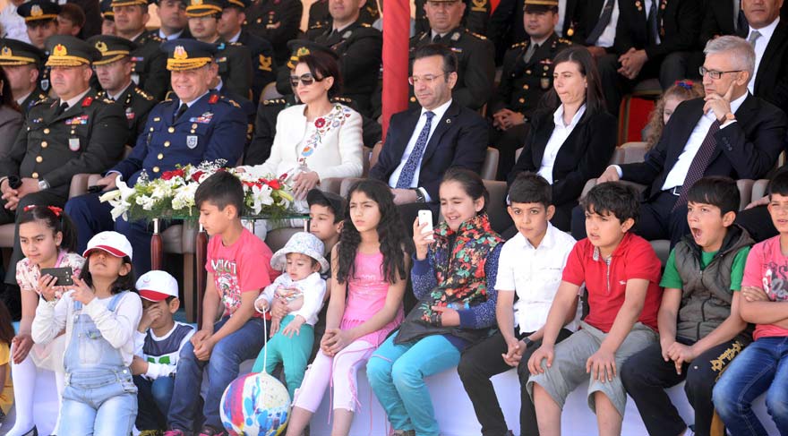 Coşkuyla kutlanan törende protokolde bulunan Vali Hüseyin Aksoy ile Başsavcı Ramazan Solmaz, çocukların gösterilerini telefonlarıyla çekti.