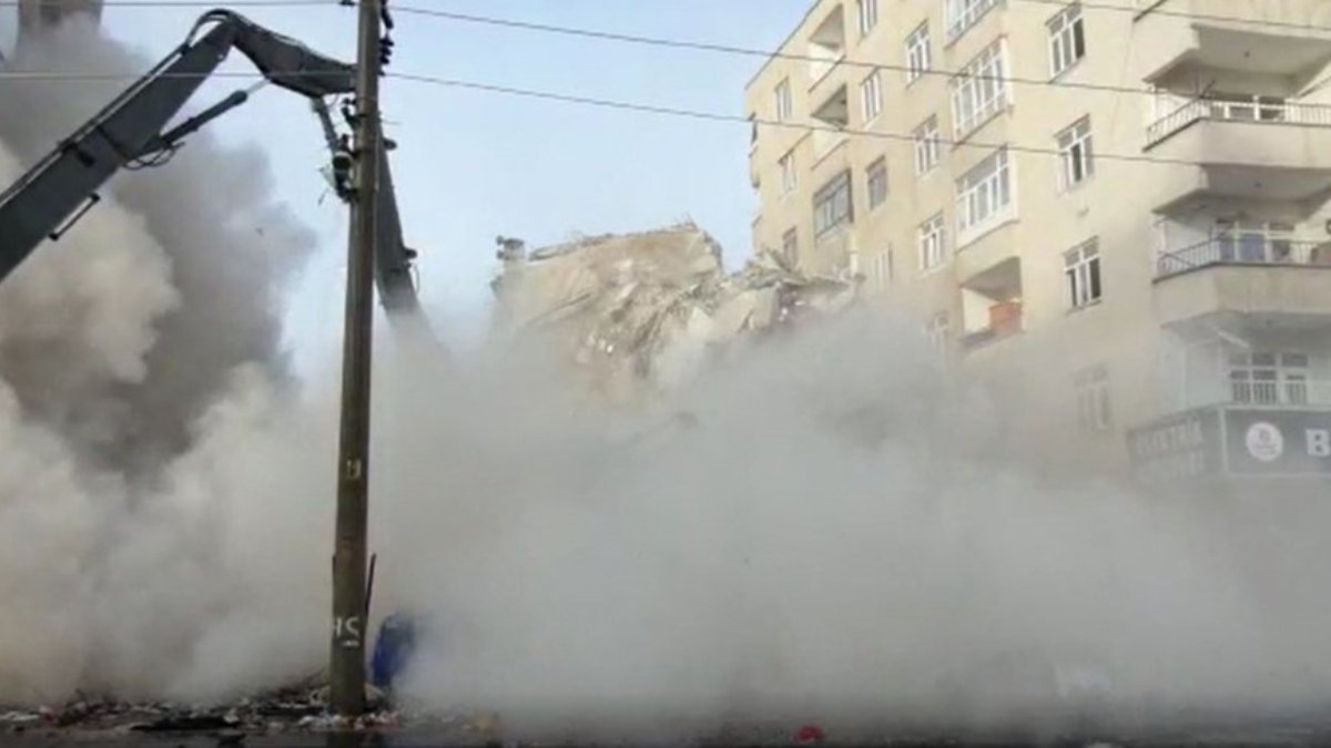 Şeyh Şamil Mahallesi Karacadağ Caddesi üzerindeki 6 katlı Çelebi 5 Apartmanı, kontrollü yıkım sırasında çöktü.