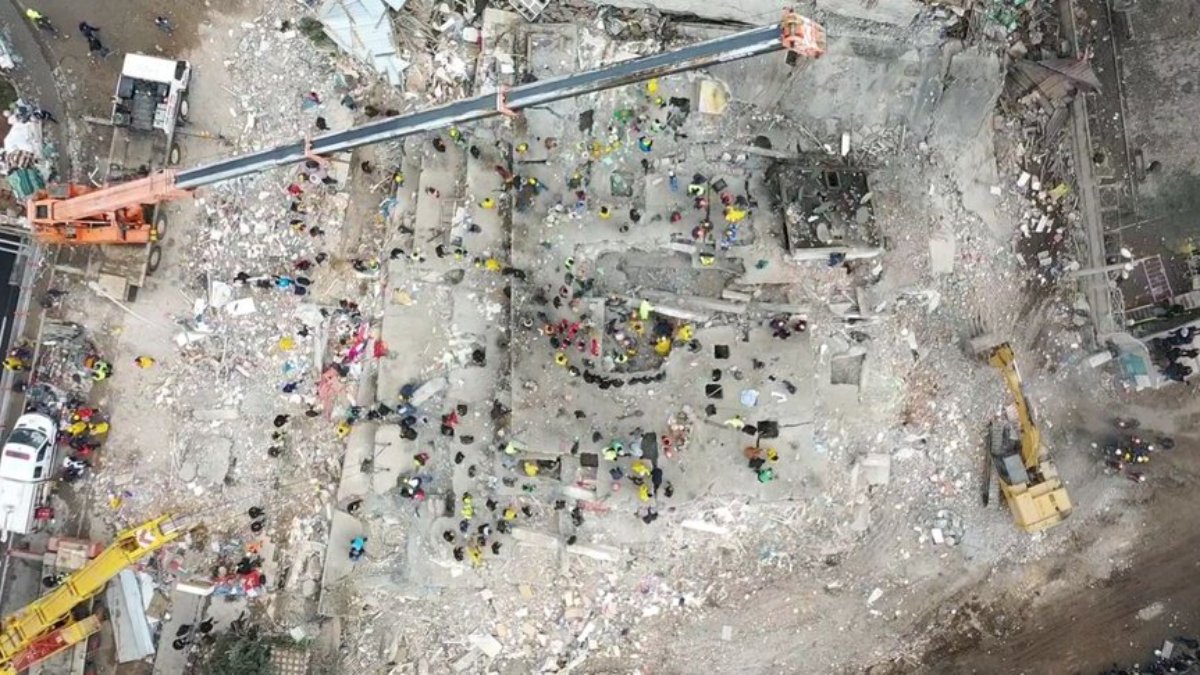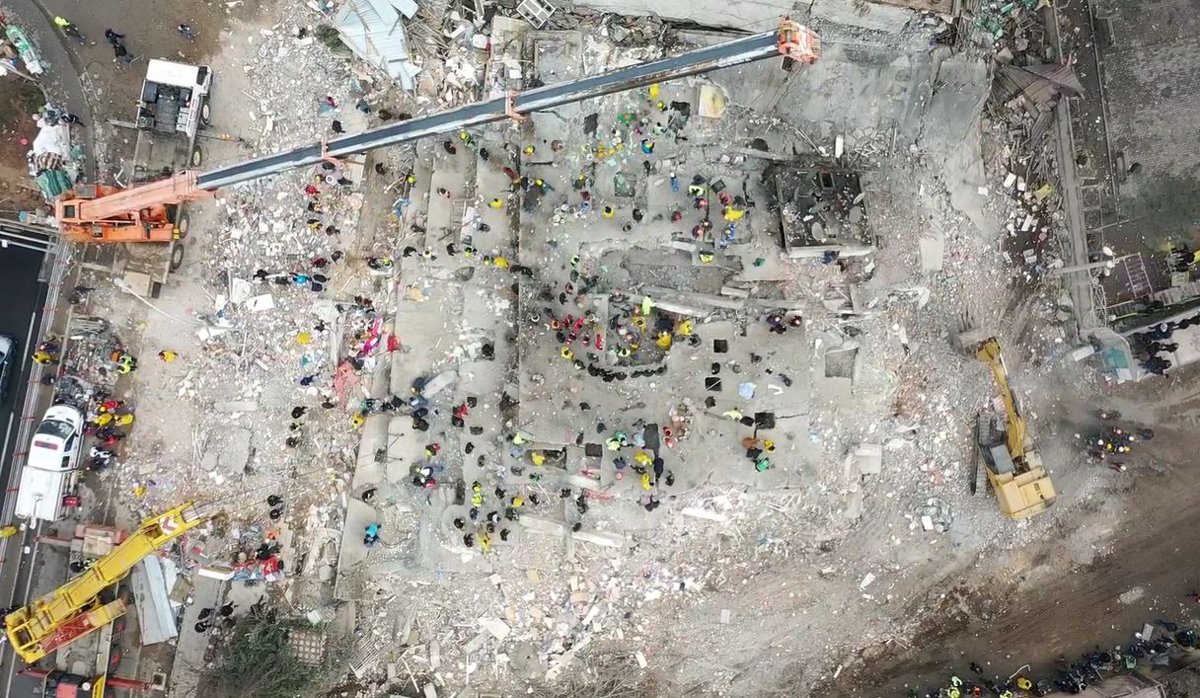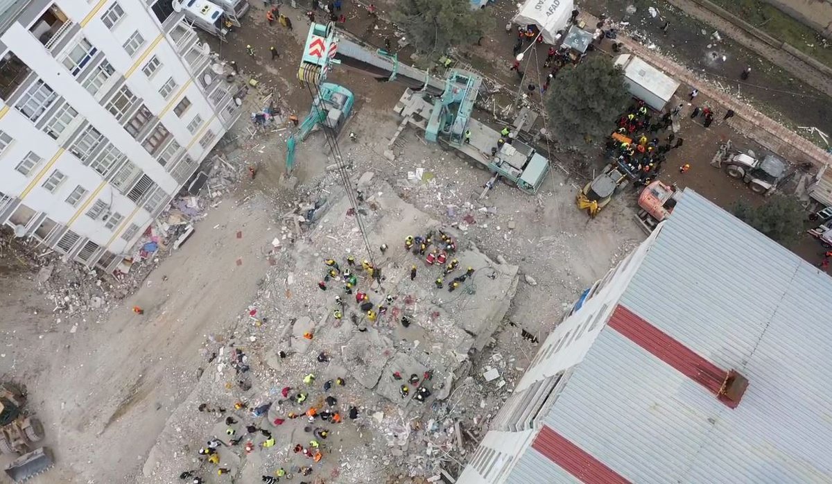 1'i boşaltılmış 7 binanın yıkıldığı depremin izleri, drone ile gün yüzüne çıktı. (DHA)