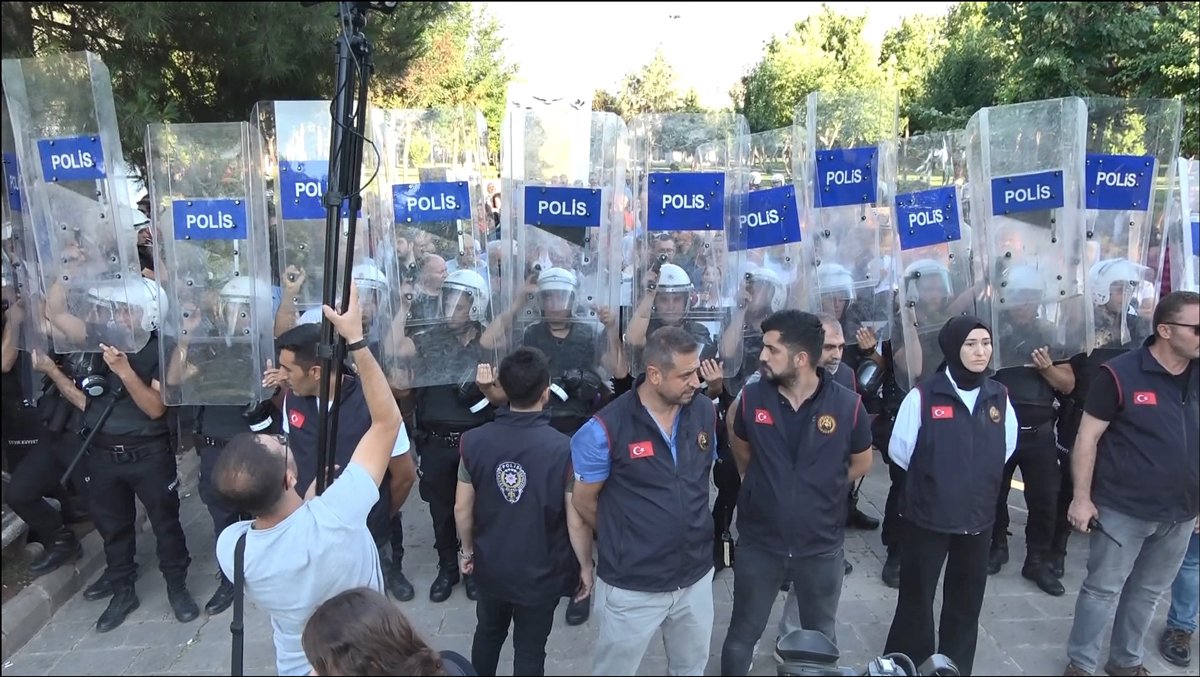 Grup, ellerinde 'Zaho Katliamını Kınıyoruz' pankartı açtı. Burada sırasıyla yapılan konuşmalarda TSK'yı hedef alan açıklama sırasında polis müdürü, anonsla açıklamayı kesip uyarı yaptı. 3 kez yapılan uyarının ardından grubun etrafı bu kez çevik kuvvet polisleri tarafından kapatıldı.