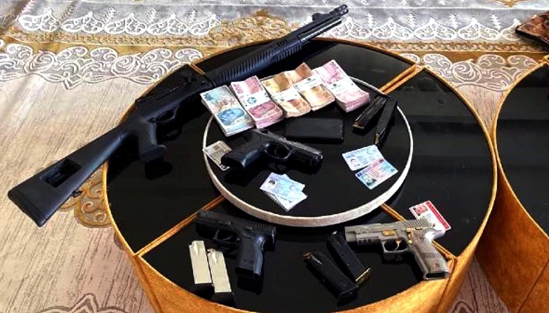 Belirlenen adreslere yapılan operasyonda çok sayıda tapu, çek, senet, silahlar ve suç delilleri ele geçirildi.