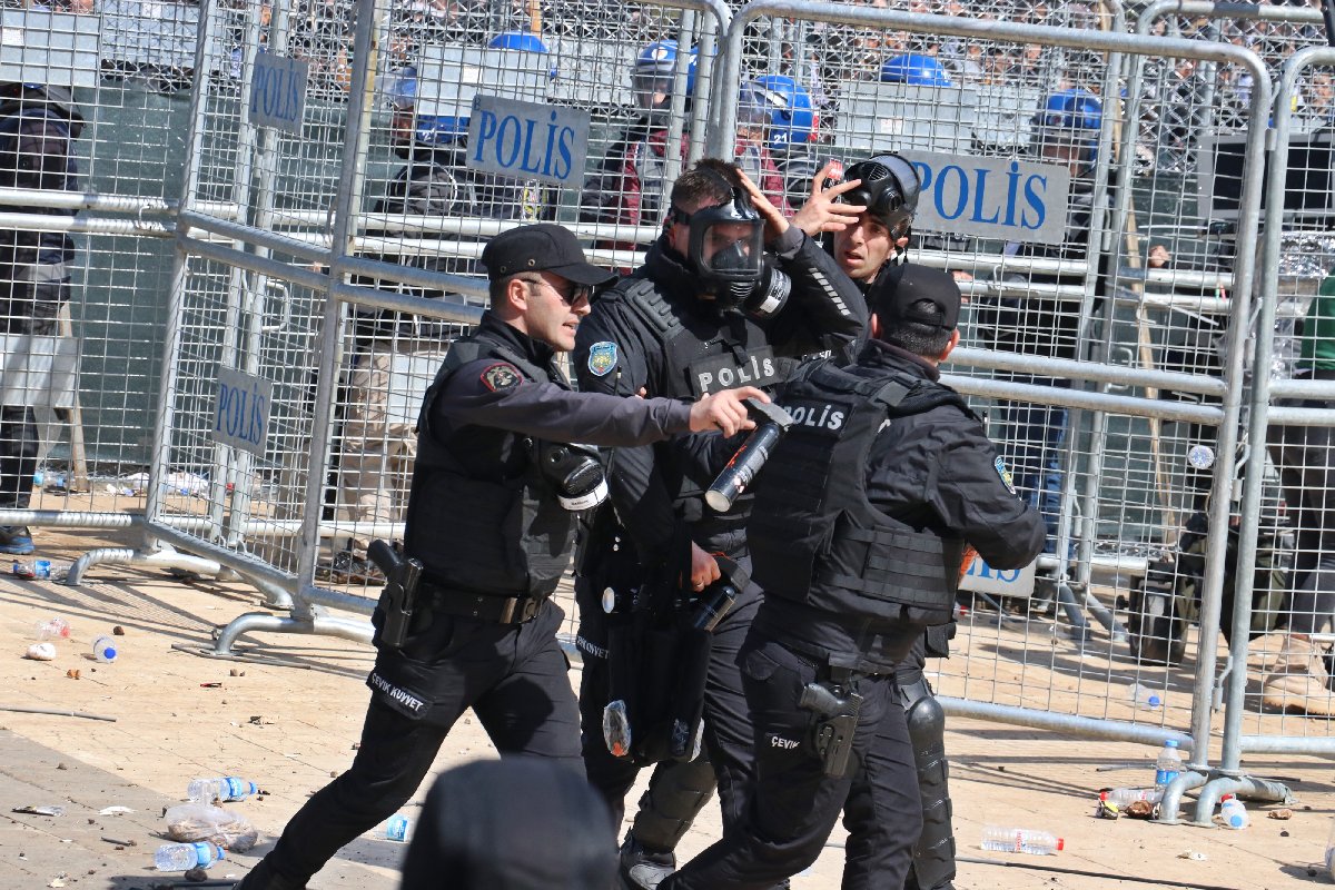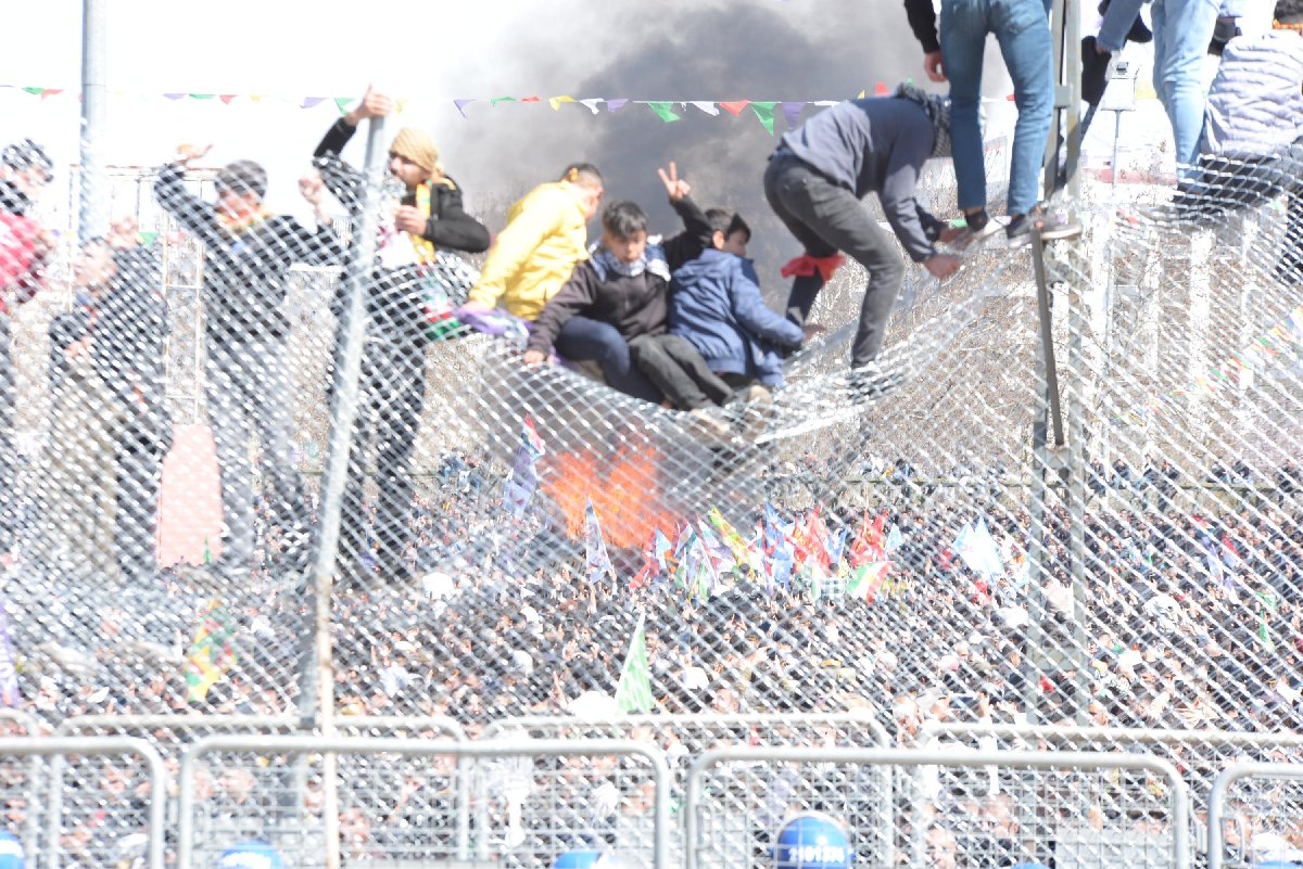 Atılan taşlardan 5 polis yaralanırken, şu ana kadar 19 kişi gözaltına alındı. Nevruz alanında 2,5 ton odun yakılırken, alanda bulunanlar halay çekerek slogan attı. Terör örgütü PKK ve elebaşı Abdullah Öcalan lehine slogan atıldı. Alanda terör örgütünü simgeleyen bez parçaları da açıldı. (DHA)