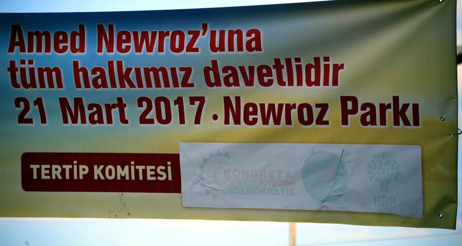 Üzerinde, 'Newroz Piroz be, Amed Newroz'una tüm halkımız davetlidir. 21 Mart 2017. Newroz Parkı' yazılan pankart ve afişlerin altına tertip komitesinin karşısına DTK, DBP ve HDP'nin logoları yerleştirildi. Valilik DTK'nın resmi bir sıfatı bulunmadığını bildirerek bunu kabul etmedi ve silinmesini istedi. Bunun üzerine yeni bir formül bulundu.