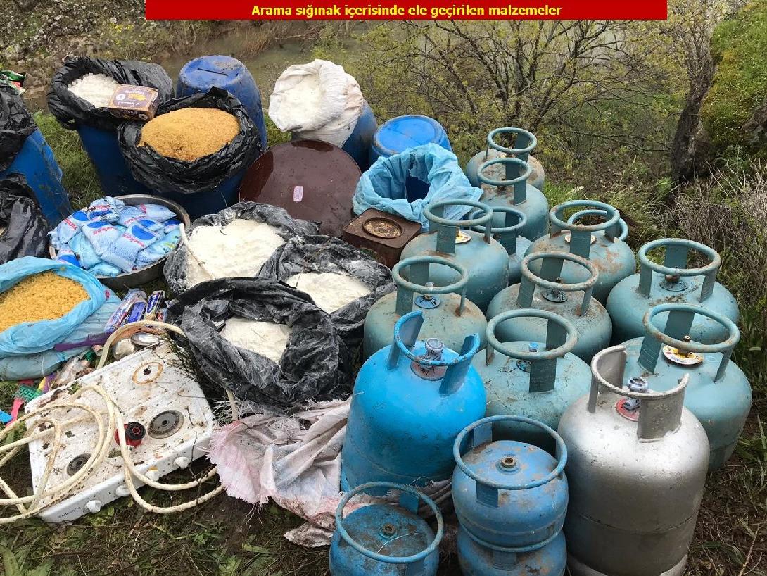 Sığınaklarda yapılan aramalarda ise yaşam malzemeleri ele geçirildi. Ele geçirilen malzemeler operasyon bölgesinde imha edildi.