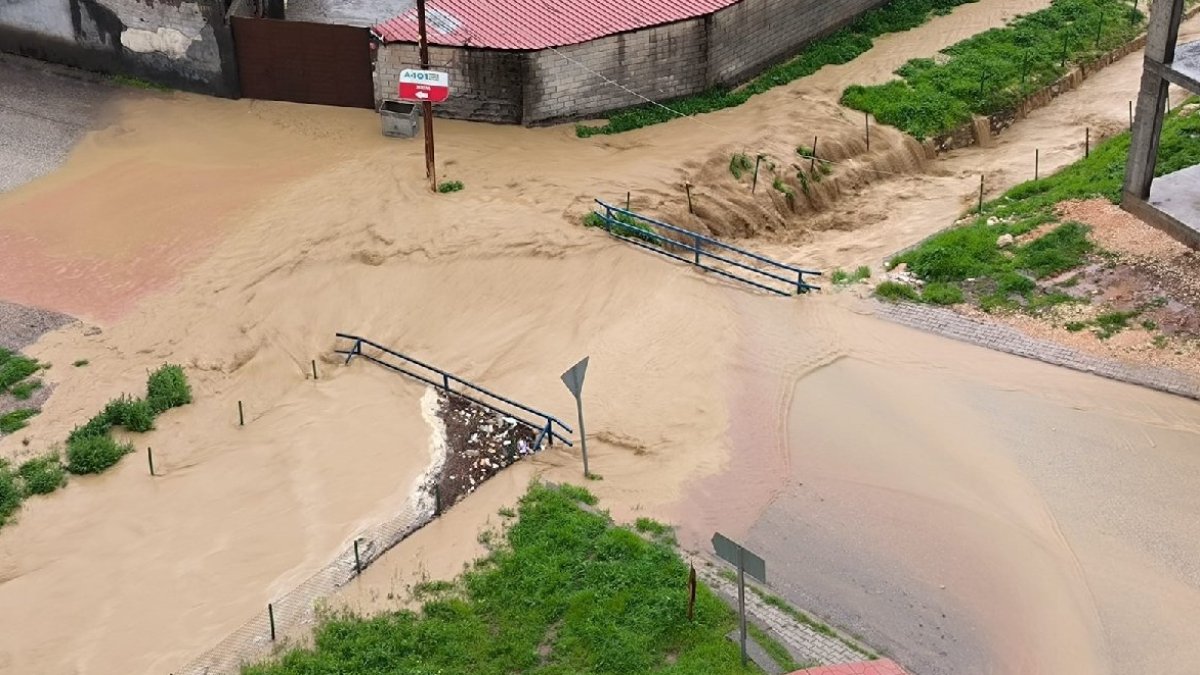 Su, cadde ve sokaklara akarken, belediye ekipleri, iş makinesiyle köprünün ağzında temizlik yapılarak suyun dereden akmasını sağladı.