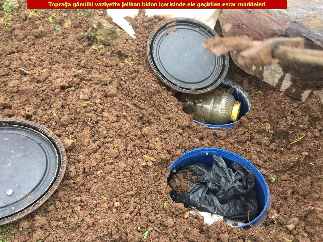 Açıklamada bir evin bahçesinde bulunan iş makinesi yardımı ile bahçede yapılan kazıda toprak altında gizlenen 100 kilogram kubar esrar ele geçirildiği ve olay ile ilgili 1 kişinin gözaltına alındığı belirtildi. Açıklamada, "İcra edilen adli arama faaliyetleri esnasında; evinin bahçesinde iş makinesi yardımıyla yapılan aramalar neticesinde, 100 kilogram kubar esrar maddesi bulunan S.Ö. isimli şahıs Cumhuriyet Başsavcılığının talimatı gereğince gözaltına alınmıştır. Bölgemizde yaşayan vatandaşlarımızın huzur ve güvenliğinin sağlanması ve teröristle mücadele kapsamında yürütülen operasyonlara artan bir azim ve kararlılıkla devam edilmektedir" ifadelerine yer verildi.