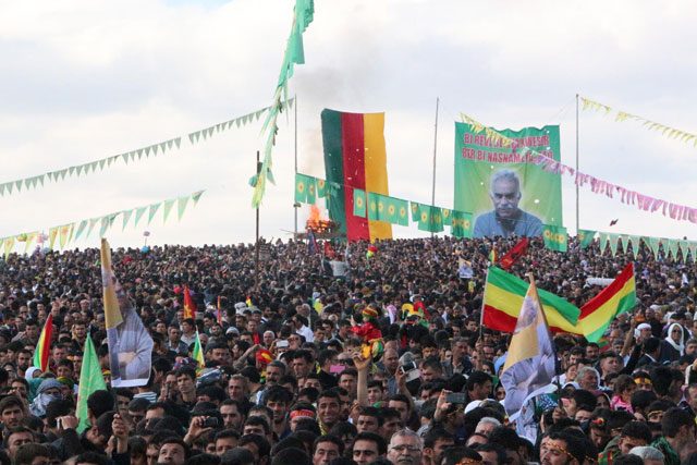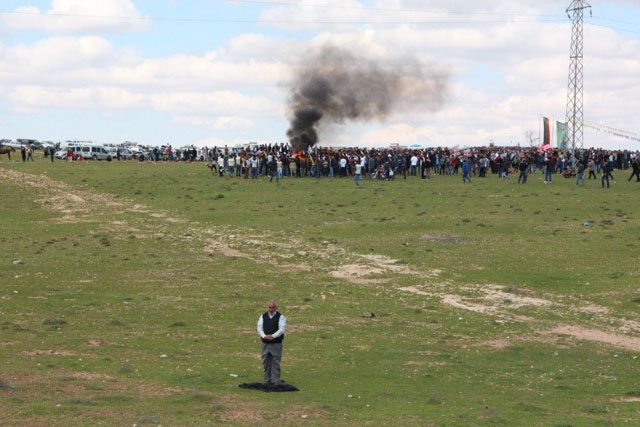 HDP ve Demokratik Toplum Kongresi'nin öncülük ettiği Nevruz kutlamaları, IŞİD'in püskürtüldüğü Suriye'nin Kobani kentine komşu Suruç'tan başlatıldı. Kutlamalar için Suruç'a gelenler Kobani sınırındaki Mürşitpınar Mahallesi'nde toplandı. Türkiye tarafında yaşananların bin benzeri de Suriye tarafında gerçekleşti ve yüzlerce Kobanili Türkiye sınırındaki bir tepede toplanarak nevruz ateşi yaktı. Sınırın iki tarafında PKK ve YPG flamaları açıldı, Abdullah Öcalan ve çatışmalarda ölenlerin fotoğrafları taşındı, sık sık sloganlar atıldı.
