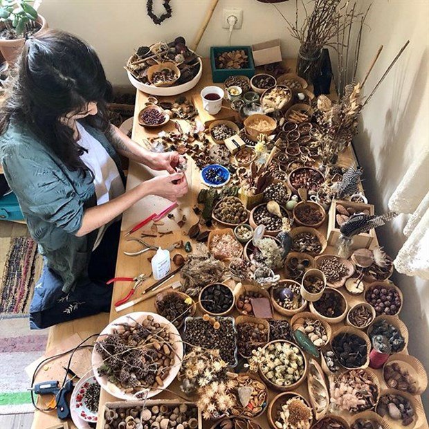 Dğa yürüyüşlerinde topladığı tohum, ağaç kabuğu ve dallardan Jungle Dudes adını verdiği birbirinden sevimli minik karakterler yaratan Nihayet Cihan, hobi olarak başladığı işi geçim kaynağına dönüştürdü.