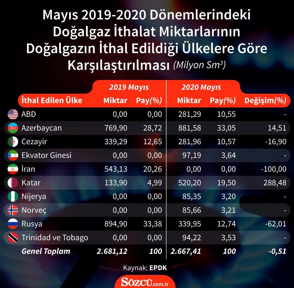 2015'te yüzde 55,31 olan Rusya'nın Türkiye'nin gaz ithalatındaki payı, 2020'nin ilk be ayında yüzde 20'ye kadar geriledi. Türkiye, mevcut boru gazı sözleşmelerine göre daha ucuz olan LNG alımının yanı sıra Rus gazına kıyasla fiyat avantajı olmayan Azeri gazı alımlarını artırdı. Azeri gazının payı 2017'de yüzde 11,85 iken 2020'nin ilk beş ayında yüzde 33'e sıçradı.