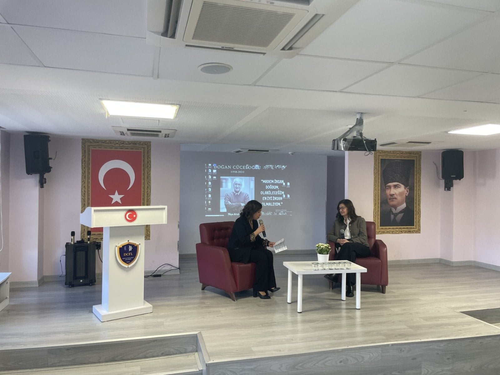 Etkinlik, lise bünyesinde bilimsel düşüncenin paylaşım ve üretim alanı olarak tasarlanan “Bilim Kafe”nin açılışıyla başladı. Açılışın ardından okulun konferans salonunda “İnsanı Anlamaya Dair İlham Verici Bir Söyleşi: Yıldız Hacıevliyagil Cüceloğlu ile Doğan Cüceloğlu’nun İzinde” başlıklı bir söyleşi gerçekleştirildi. Söyleşide Yıldız Hacıevliyagil Cüceloğlu, okulun edebiyat öğretmeni Meral Ünlü Yavuz ve öğrencilerin sorularını yanıtladı. Cüceloğlu, eşi Doğan Cüceloğlu’nun yaşamını, bilimsel yaklaşımını ve insanı anlama üzerine geliştirdiği düşüncelerini anlattı.