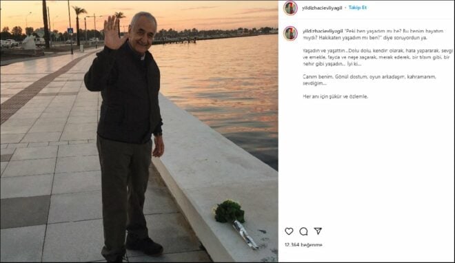 Doğan Cüceloğlu'nun deniz kenarında çekilen bir pozunu paylaşan Yıldız Cüceloğlu, şu ifadeleri kullandı: