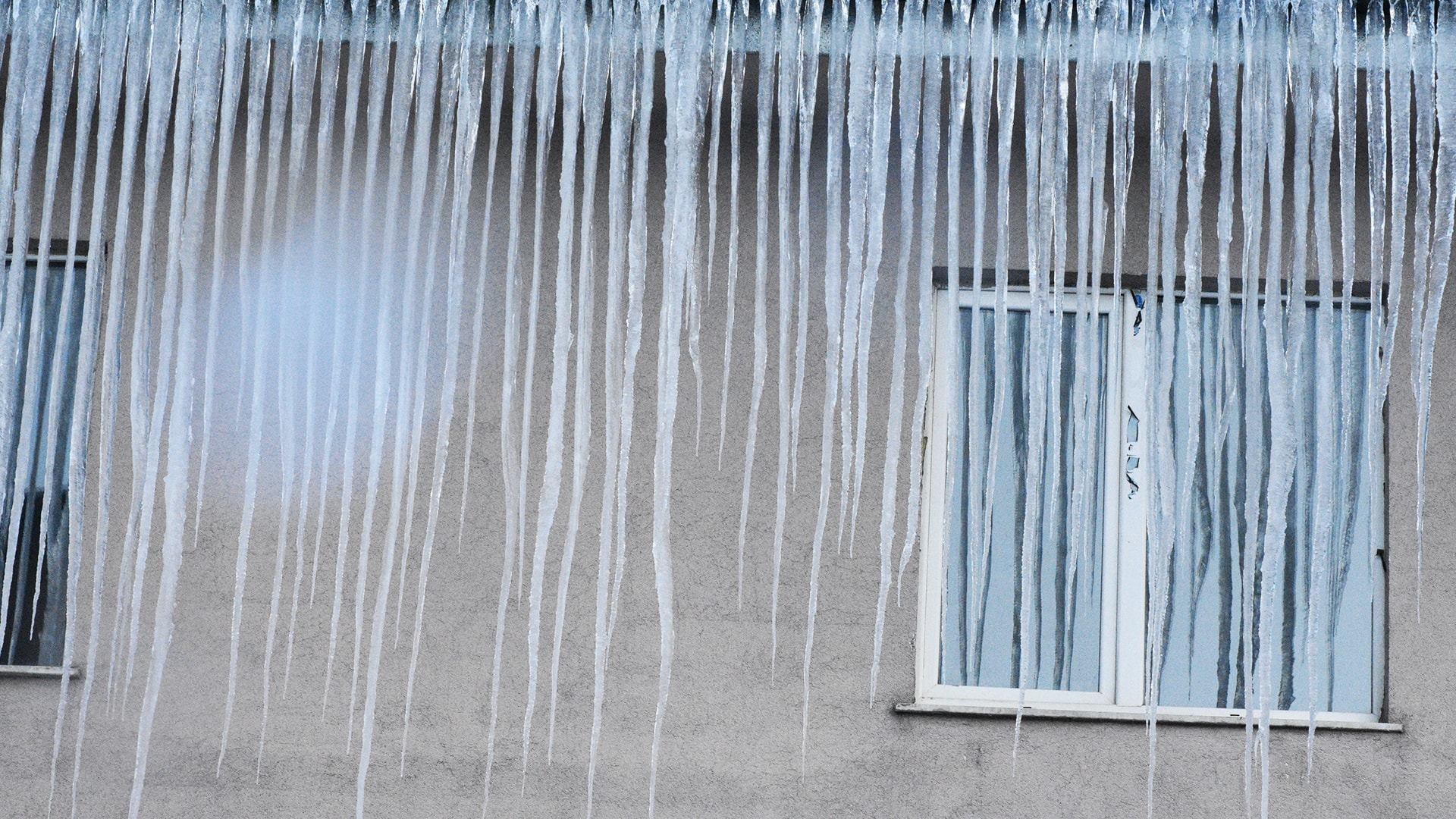 Nehir ve derelerin donduğu kentte, binaların çatılarında buz sarkıtları oluştu.