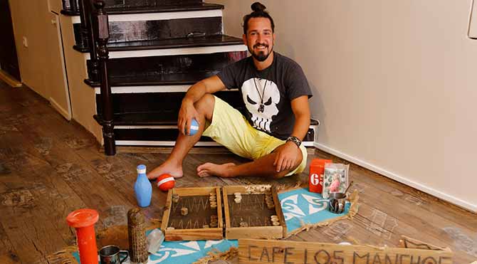 Elbette var. Mesela, topların bende büyük travmaları vardır. Çocukluğumdan beri futbolda, basketbolda başarısız oldum. Bunu Survivor’a da taşıdım. Rakip takımın ve benim, mavi kırmızı olan toplarını getirdim. Orada yaptığım tavla vardı, onu getirdim. Kullandığım eşyaları getirdim. Yemek tabağımı ve termosumu. Termosun üzerinde takvim yaptım (üstte), günleri saydım. Malzemeleri Moda’daki Barış Manço Evi’nde olan Doğukan Manço’nun odasında sergileyeceğim.