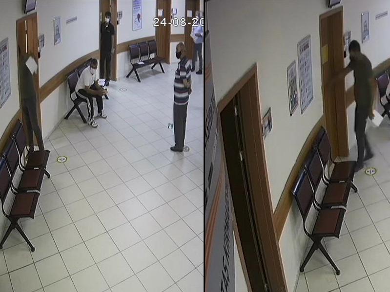 O olaya ait güvenlik kamera görüntüleri ortaya çıktı. Görüntülerde doktor odasına giren Aksarı bir süre içeride kalıyor, ardından dışarı çıkacakken kapı hızla kapatıldığı görülüyor.