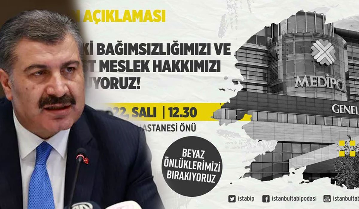 İstanbul Tabip Odası ve birçok uzmanlık derneğinden hekimler, Sağlık Bakanlığı tarafından 6 Ekim’de Resmi Gazete’de yayınlanan ve hekimlerin özel hastanelerde çalışma koşullarında kısıtlama öngören Özel Hastaneler Yönetmeliğinde Değişiklik Yapılmasına Dair Yönetmelik’i protesto etmek için, 27 Aralık Salı günü Sağlık Bakanı Fahrettin Koca’nın kurucusu olduğu Medipol Mega Bağcılar Hastanesi’nin önüne beyaz önlüklerini bırakacaklar.