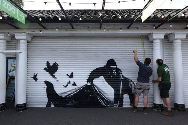 Yeni duvar resminde, bir gorilin kuşları ve foku serbest bırakmak için kepengi bir örtü gibi kaldırdığı görünüyor. Son dokuz gündür Londra'nın dört bir yanında bu gizemli sanatçının duvar resimleri ortaya çıkıyor. 5 Ağustos'tan bu yana devam eden seri hayvan haklarını hatırlatırken ince eleştirileri de barındırıyor.