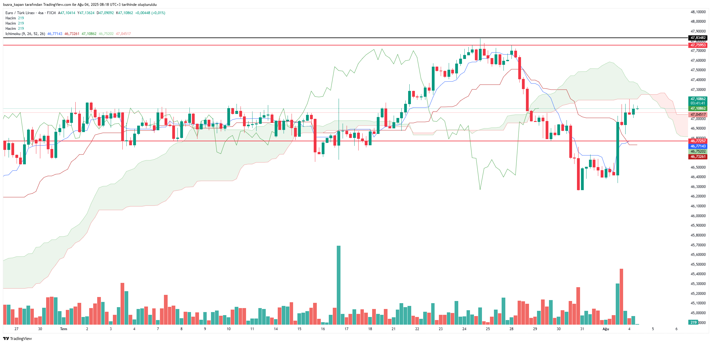 Euro/TL ise yeni haftanın ilk işlem gününde yönünü yukarı çevirdi. Haftanın son işlem gününü 46,33 ile 47,15 aralığında geçiren Euro/TL günü47,06 seviyesinde tamamladı. Yeni günde ise sabah seansında 08.16'da 47,10 seviyesinde bulunuyor.