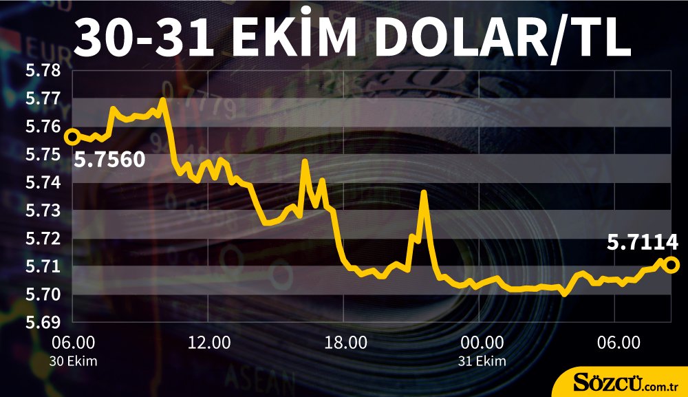 Dolar/TL bugün saat 09.48 itibarıyla 5.7171/5.7200'dan işlem görüyor. Kurun söz konusu seviyelerdeki seyri devam ediyor.