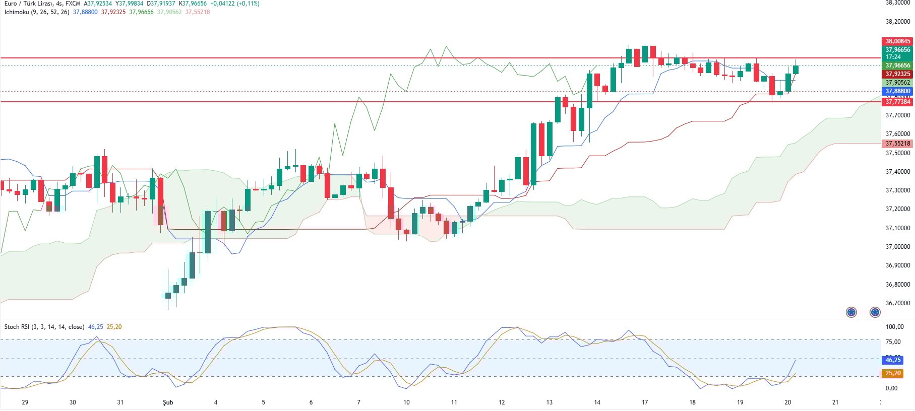 Euro/TL'de yukarı yönlü hareketlenmelerin olduğu görülüyor. Dünü 37,77 - 38,00 aralığında geçiren Euro/TL günü 37,83 seviyesinde tamamladı. Yeni günde ise sabah seansında aynı saat diliminde 37,96 seviyesinde bulunuyor.