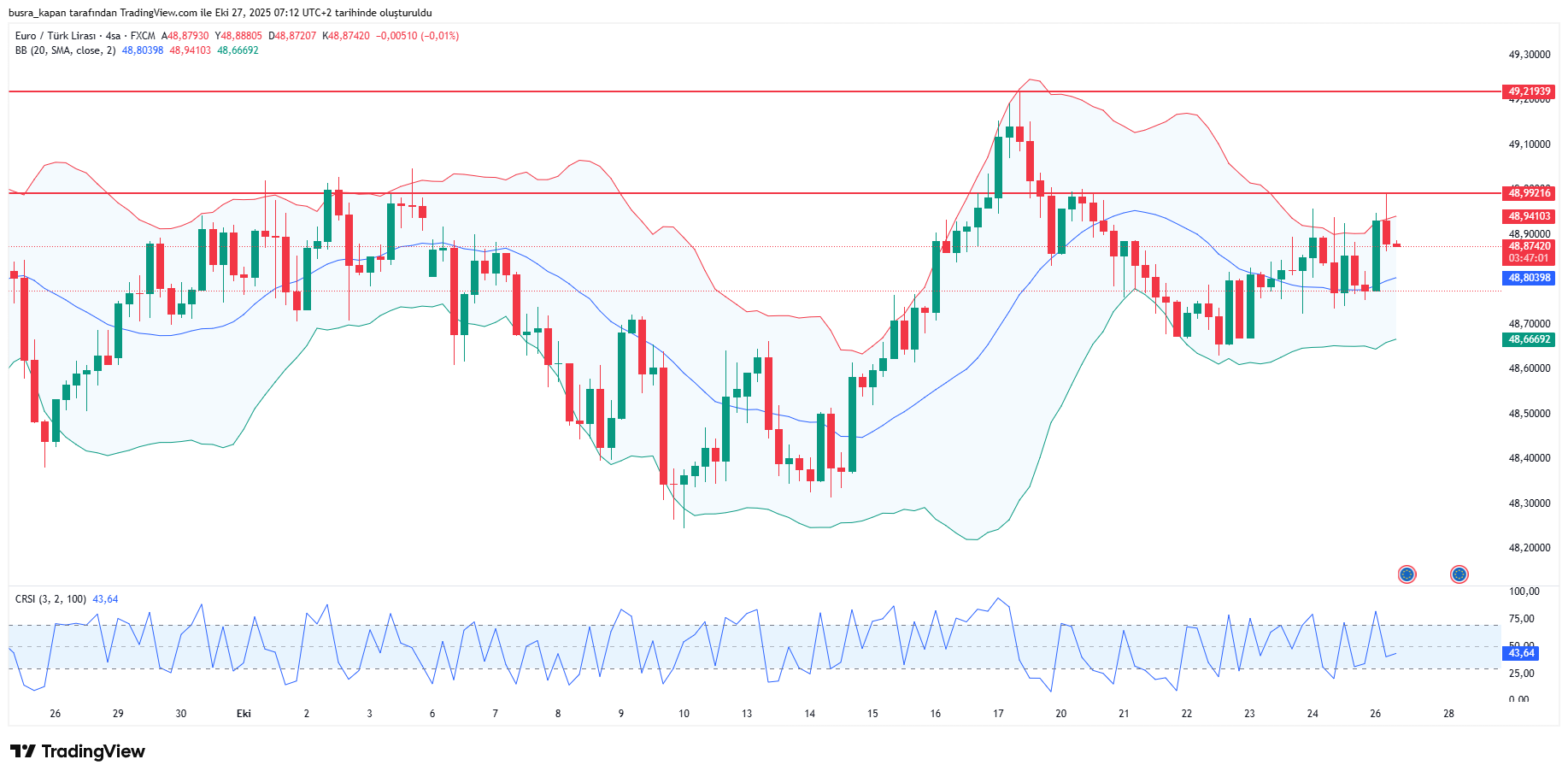 Euro/TL haftanın ilk işlem gününde yukarı yönlü hareketleniyor. Euro/TL sabah seansında 08.10'da 48,87 seviyesinde bulunuyor.