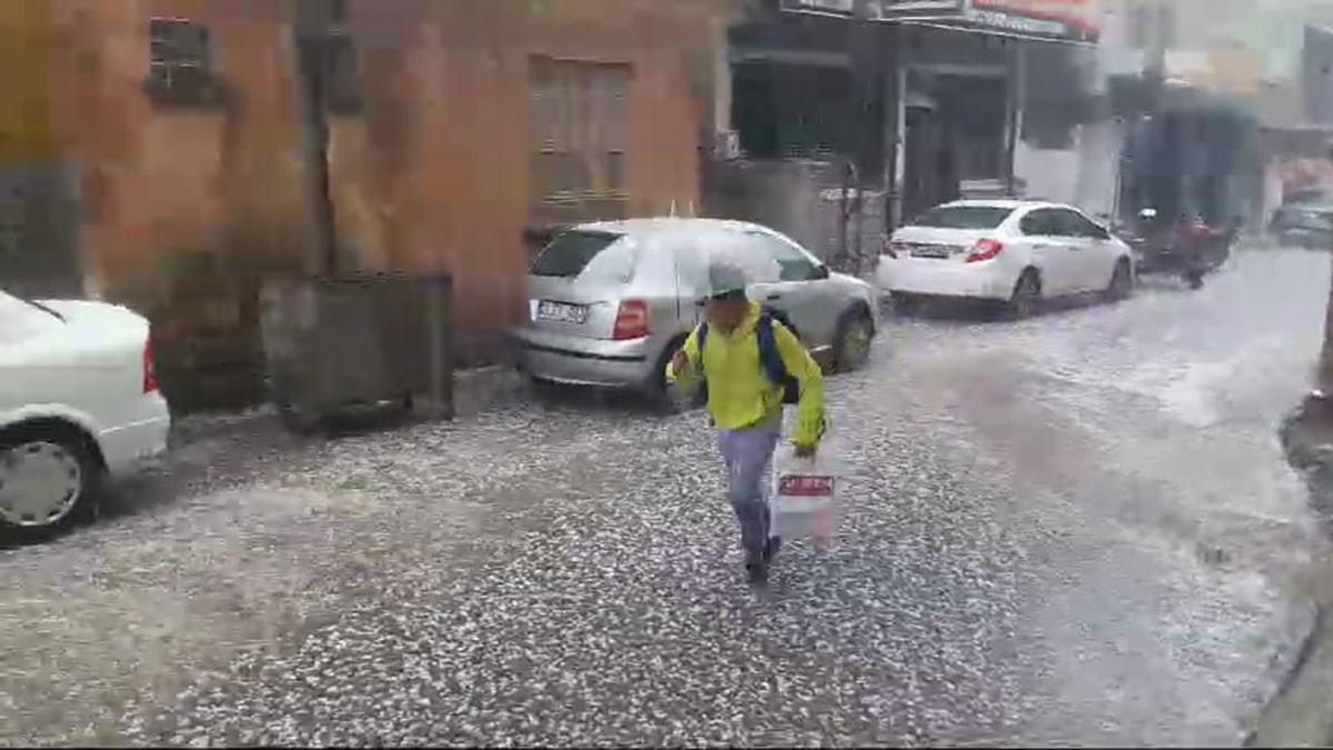 Diyarbakır’ın Ergani ilçesinde öğle saatlerinde sağanak, ardından dolu etkili oldu.