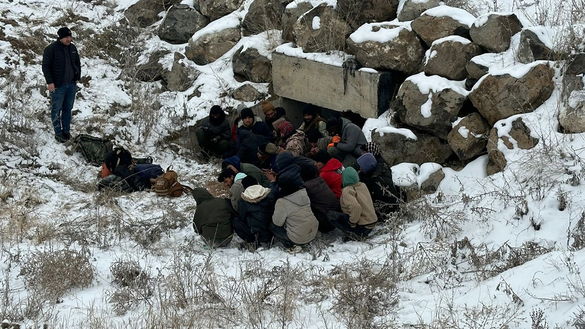 Kar yağışı ve soğuk hava nedeniyle bazıları donma tehlikesi geçiren göçmenler, İl Jandarma Komutanlığı ekiplerine teslim edildi.