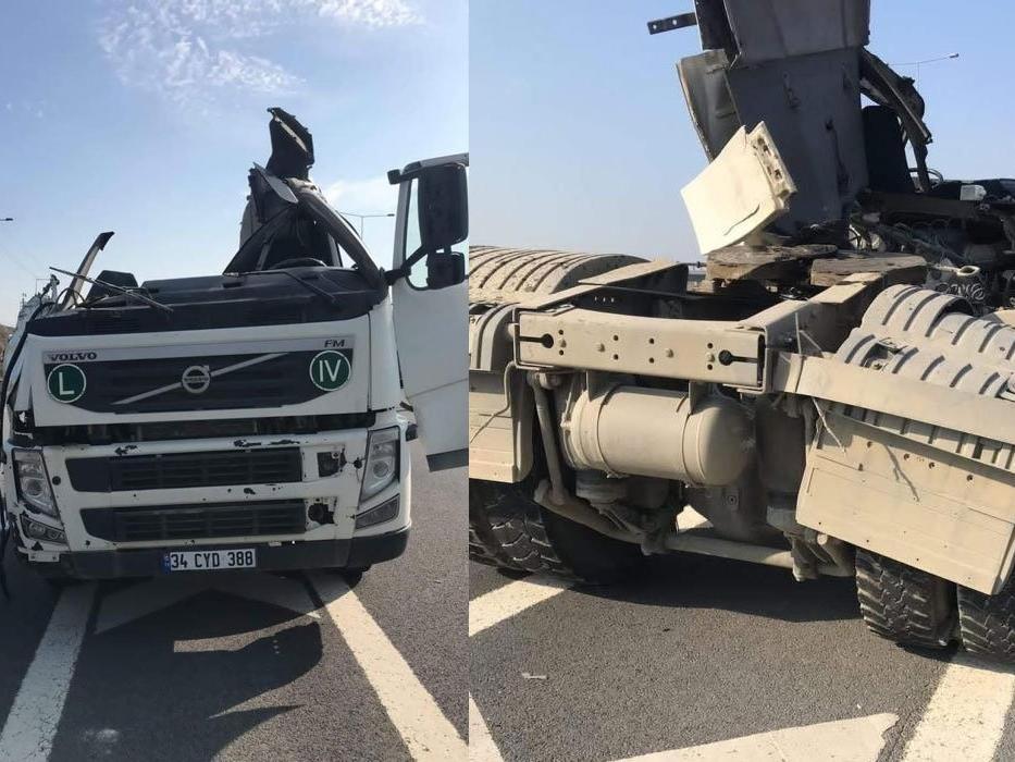 Kuzey Marmara Otoyolu Cebeci Tüneli mevkiinde hızla gelen bir kamyon öndeki başka bir kamyona arkadan çarptı. Çarpmanın etkisiyle dorsesi ve kupası kopan kamyonun parçaları yola savrulurken kamyon sürücüsü yaralı kurtuldu.