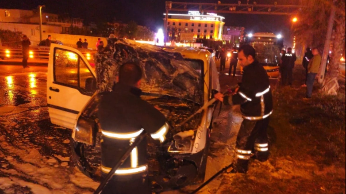 Çarpışmanın şiddetiyle hafif ticari aracın motor kısmı alev aldı. Kaza sonrası bölgeye sağlık, itfaiye ve polis ekipleri sevk edildi. Yangın, itfaiye ekiplerinin müdahalesiyle kısa sürede söndürüldü. Kazada yaralanan 1 sürücü, ilk müdahalenin ardından hastaneye kaldırıldı.