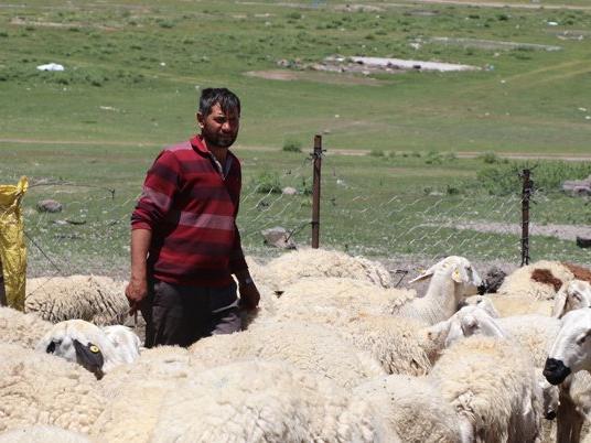 FOTO: DHA* 500 hayvanım varken, 300 küçükbaş hayvanım kaldı. Benim işletmemde maaş, yemek, elbise, ayakkabı her şeye bana ait olmasına rağmen çoban bulamadığım için kendi hayvanımın çobanlığını yapıyorum. (DHA)
