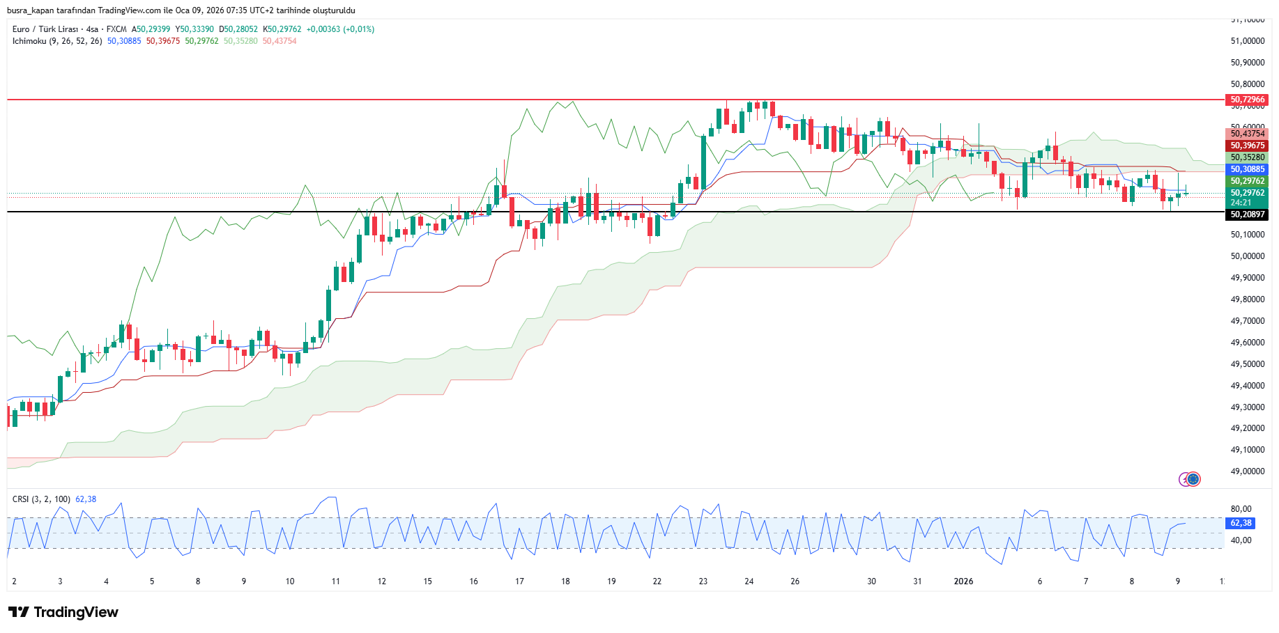 Euro/TL haftanın son işlem gününe yükselişle başladı. Euro/TL bugün sabah seansında 08.31'de 50,29 seviyesinde bulunuyor.