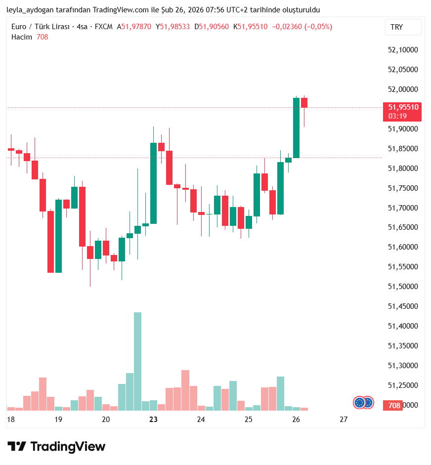 Euro/TL'de yukarı yönlü hareketlenmelerin olduğu görülüyor. Bugün sabah seansında saat 08.57'de 51,95 seviyesinde bulunuyor.