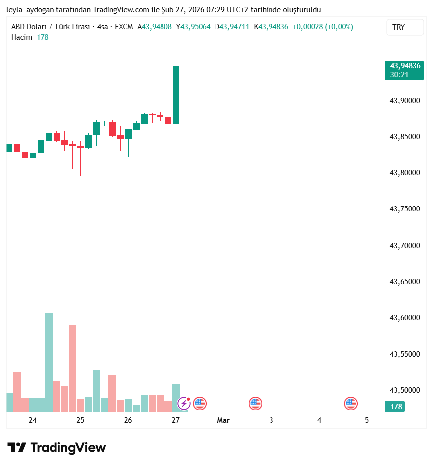 Serbest piyasada dolar/TL kuru 43,96 seviyesi ile rekor tazelerken, Euro/TL de yönünü yukarı çevirdi.