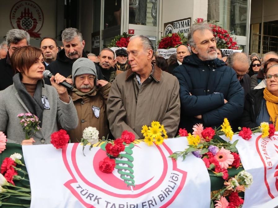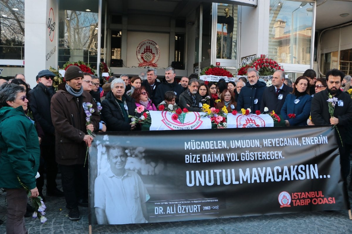 Türk Tabipleri Birliği (TTB) Yüksek Onur Kurulu üyesi Dr. Ali Özyurt’u son yolculuğuna uğurlamak için İstanbul Tabip Odası önünde tören düzenlendi.