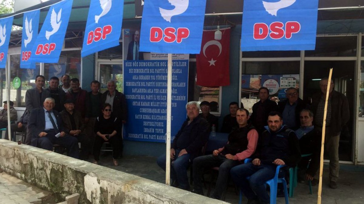 Önder Aksakal’a tepki gösteren ve Cumhur İttifakı’na destek vermeyeceklerini açıklayan DSP Manisa İl Başkanı İbrahim Topuk, ilçe başkanlarının ortak kararıyla partisinin İl Başkanlığı binasına pankart astı. Parti binasına asılan pankartta şu ifadeler yer aldı: