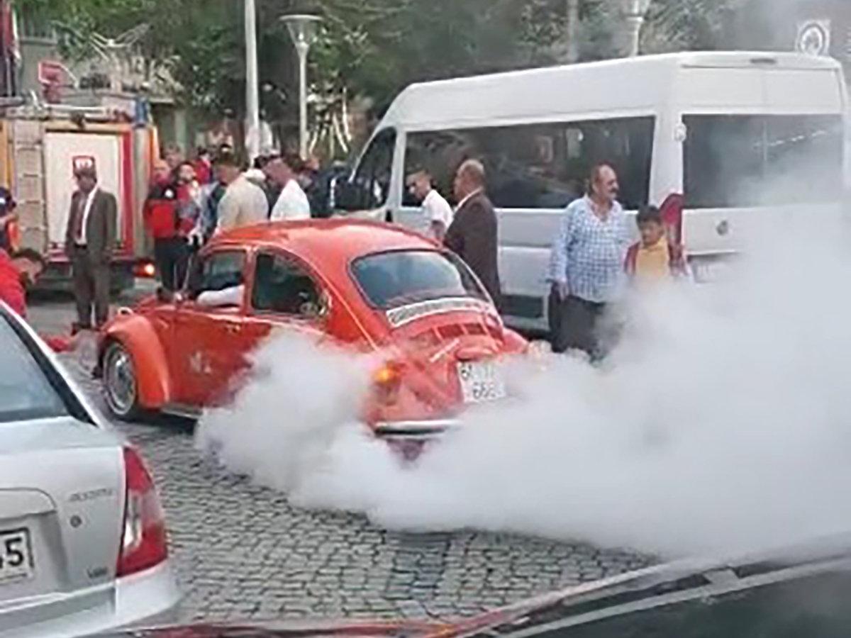 Düğün konvoyunda lastik yakan araç trafikten men edildi