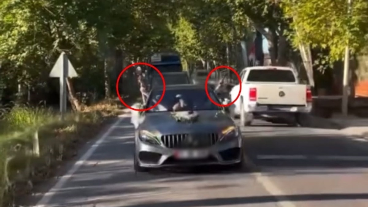 Oluşturulan düğün konvoyunun önündeki otomobilde bulunan gelin ve damat, Termal yolu üzerinde araçtan çıkardıkları tabancalarla aynı anda havaya rastgele ateş etti.