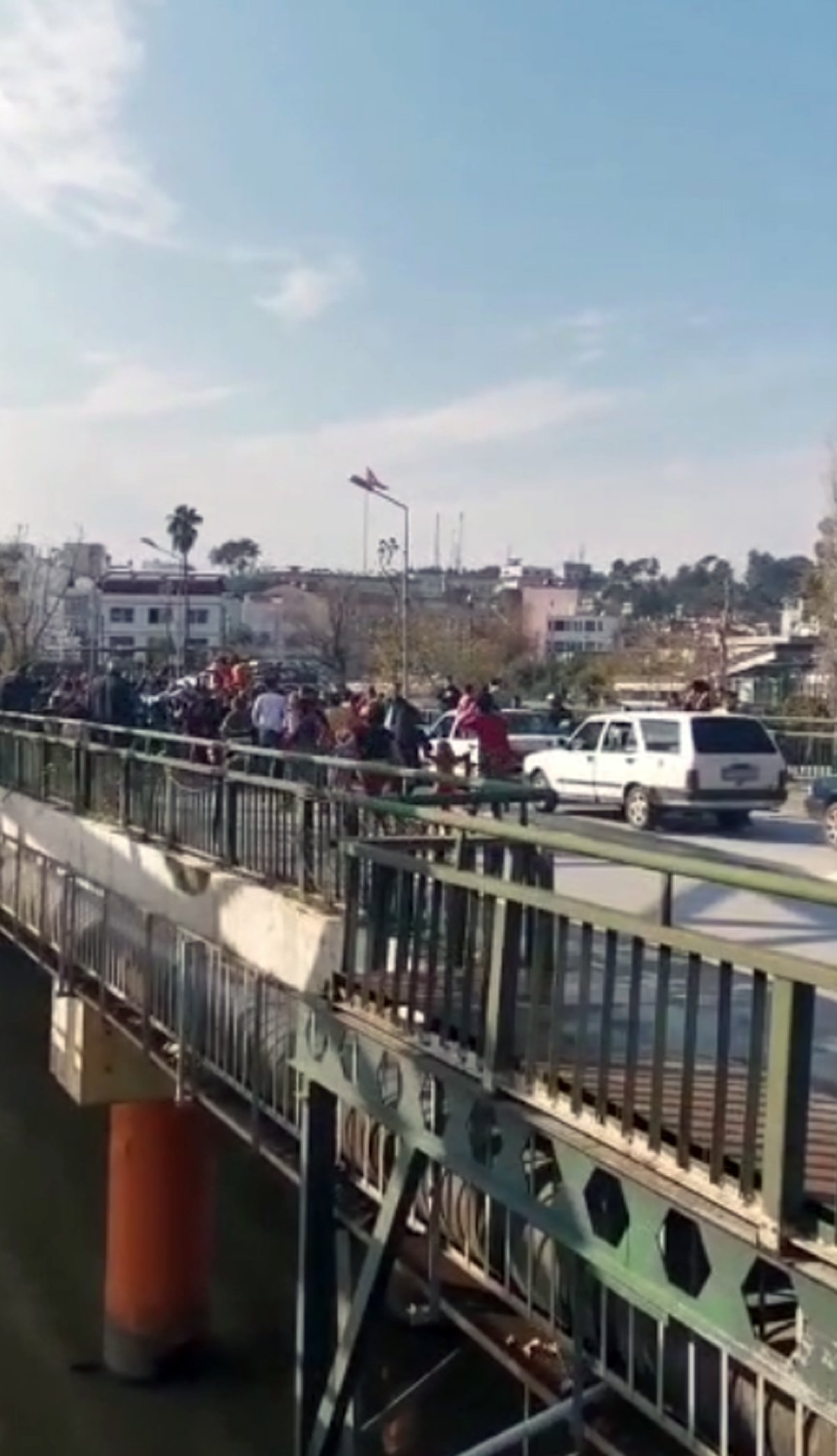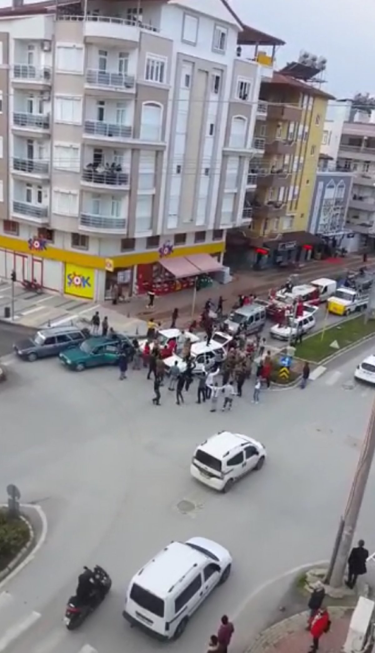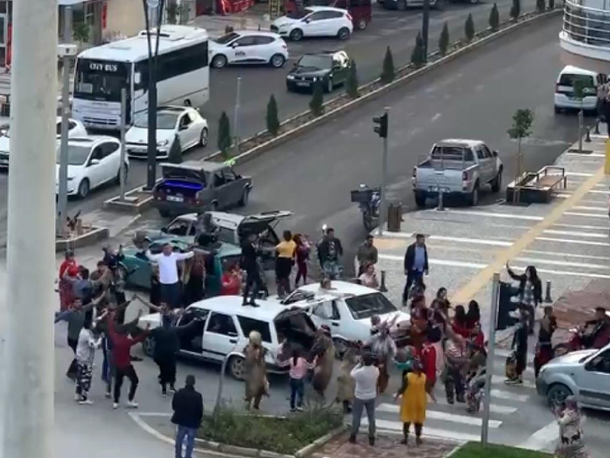 Görüntülere göre, konvoydakiler, kentin işlek bir caddesinde trafik lambasında aracı durdurup, yolda oynadı. Otomobil tavanında oynayanların yanı sıra bazıları da araçtan inerek eğlendi.