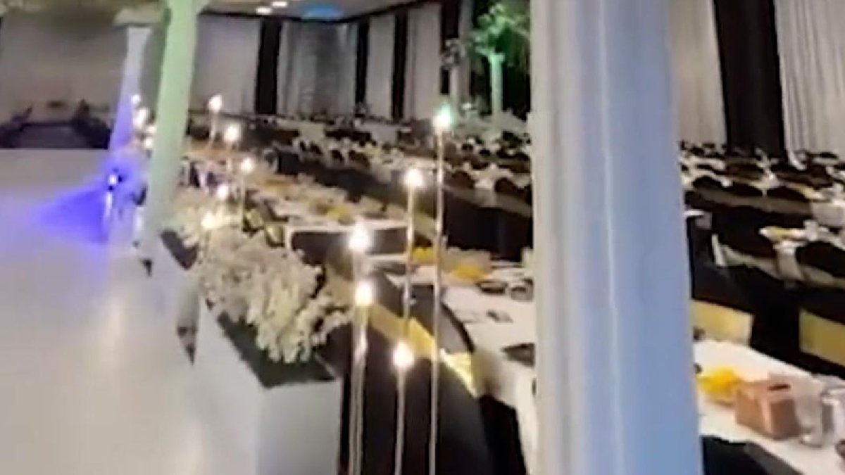 Gelin ve damadın dans ettiği esnada çıkan yangın görüntüleri sosyal medyaya da yansıdı. Görüntülerde insanların panik içinde sağa sola koşuşturdukları yer aldı.