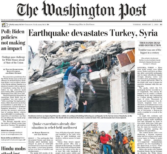 Fransız Le Monde gazetesinde kurtarma çalışmalarına dikkat çekilirken Washington Post, Suriye’de halihazırda zor olan koşular altında kurtarma çalışmalarının sürdüğünü kaydetti.