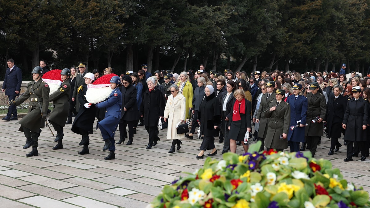 MSB’de görevli kadın personelin de yer aldığı ziyarette, Atatürk’ün mozolesine çelenk bırakıldı. Tören birlik komutanlığını bir kadın subayın yaptı, çelengi de kadın astsubaylar taşıdı.
