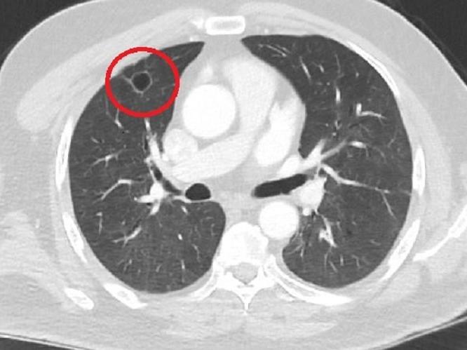 - Hastamız, çalıştığı başka bir kentte göğsünden darbe alıyor ve ağrıları geçmeyince bir üniversite hastanesine başvuruyor. Burada hastaya bir akciğer grafisi çekiliyor. Sağ akciğerinde bir kitleye rastlanıyor. Daha sonra hastaya, bir akciğer tomografisi çekiliyor ve göğüs cerrahisi için önemli büyüklükte olan 4 santimetre çapında, akciğer kanserine benzer özellikte radyolojik bulgular olan bir kitle tespit ediliyor. Daha sonra hastaya yapılan ileri tetkiklerde akciğer kanseri teşhisi konuluyor. Hastaya bir cerrahi planlanıyor.